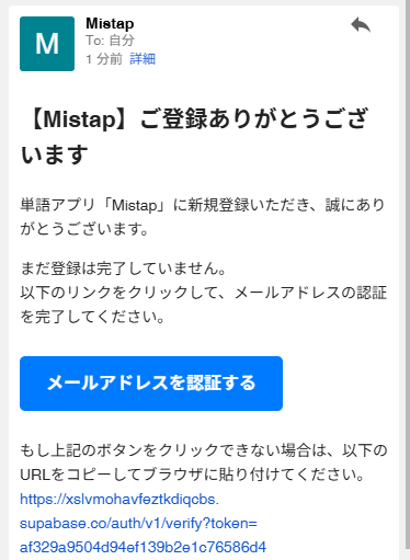 認証用のメールが届くので、リンクをタップしたら認証完了です。
