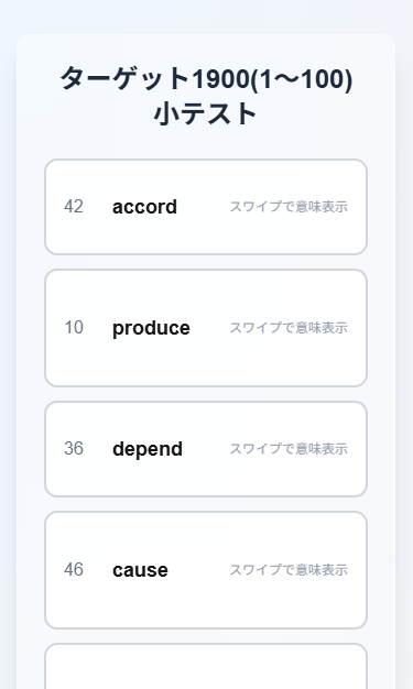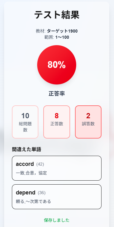 今すぐデモを試してみる※「間違えた単語」の保存にはアカウント登録(無料)が必要です。