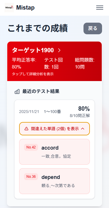 以上、Mistapの基本的な使い方でした、簡単な操作で間違えた単語を手軽にチェック、記録できるので「覚えたつもりだったけど実は覚えられていなかった…」を防ぐことができます。ぜひ利用してみてください!